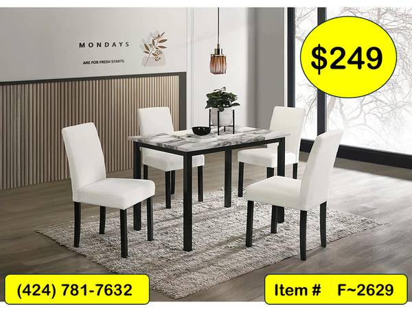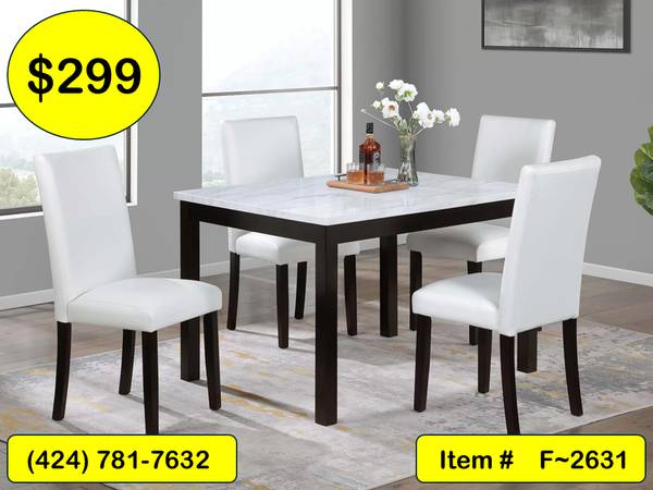 F~2629: 5 Pcs. White Dining Set w/ Faux Marble Table Top~ $249