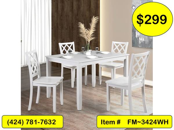 FM~3424WH: 5 Pcs. White Wood Dining Set ~ $299