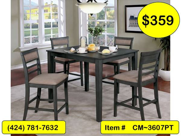 CM~3607PT: 5 Pcs. Weathered Gray Counter Height Table Set w/ Padded Fabric Seats ~ $359