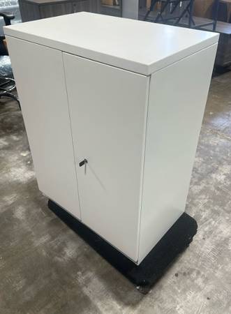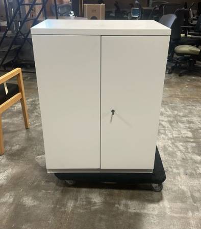 New Out Of The Box Haworth White Metal Storage Cabinet With Key