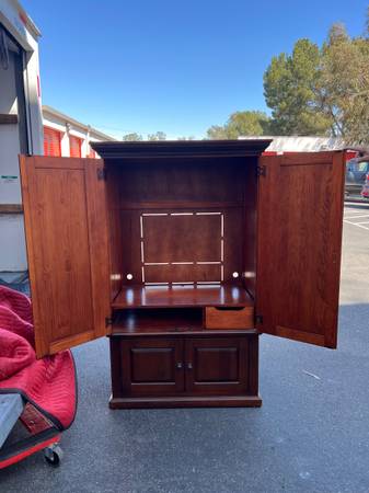 Large Armoire Great/excellent condition 2 doors on top and 2 doors on bottom. Made of real wood. Excellent to good condition. Dims : 66” H x 23”D x 42” W. FREE! Can be picked up in Aliso Viejo Public storage. Bring help and truck to load. If interested contact me here through my Craig’s list email so we can connect through phone on pick up time and day. It does have a few scratches on the front and sides not shown in photo.