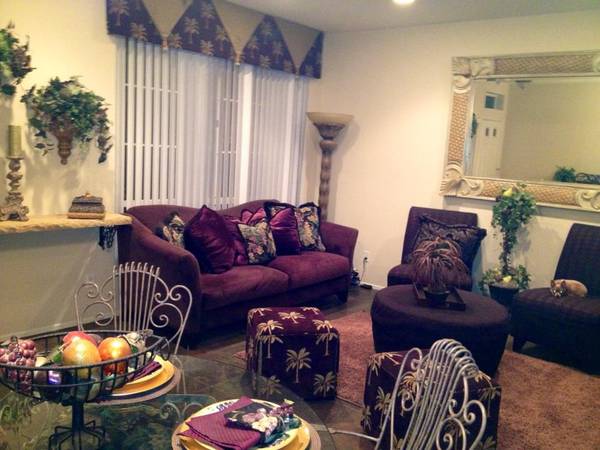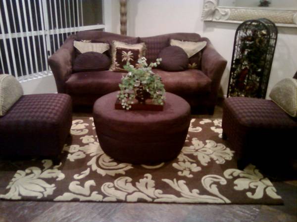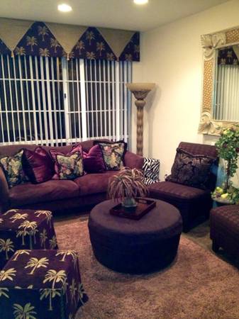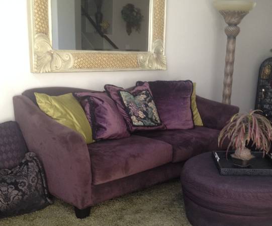 This sofa is an original Franciscan, made with a solid wood frame and heavy duty springs (not a cheap particle board). It is a dark eggplant color, that looks lighter or darker depending on the room...
