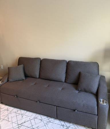 Priced to Sell Quick! Like New! Grey Extendable Sofa . Barely Used , non smoking , non pet environment. Dimensions when Not extended; Length 80” by Depth 30” by 32” Tall with Cushions Depth...