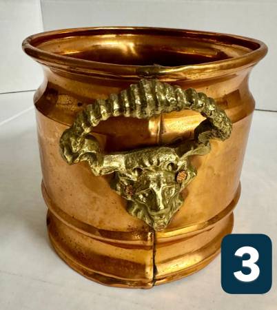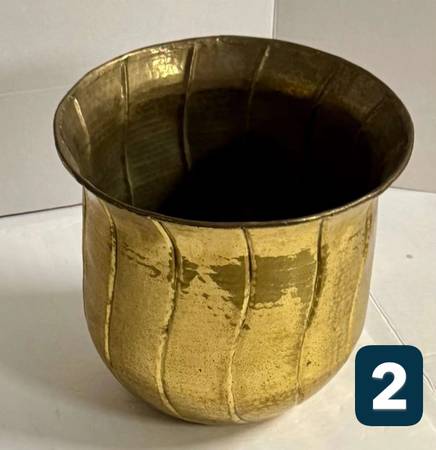 Check out these great treasures, from our house to yours! Text me at nine-four-9-eight-one-two-9224 if interested, first-come first first-served. Vintage Hammeref Planter (#1) in brass finish-(17"...