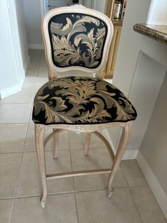 These are in very good condition. Seats are 21”x20”. Backs are 12”x12@. Thick padding on seats- 28”-30” high. Top height is 44”. I am also selling 4 matching chairs in my other post.
