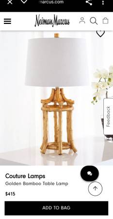 Gold Leaf Chinoiserie Lamp As featured in Neiman Marcus, this is a stunning pair of faux bamboo lamps in chinoiserie style in gold leaf. Manufactured by Couture Lamps. I have 2 available at $295...