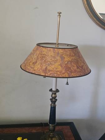 Neoclassical Candlestick Lamp with Faux Burlwood Shade Gorgeous table lamp with 2 bulbs, and beautiful shade, works great Underwriters Laboratories 15"D 30"H $145 Pick up in Anaheim $95 faux...