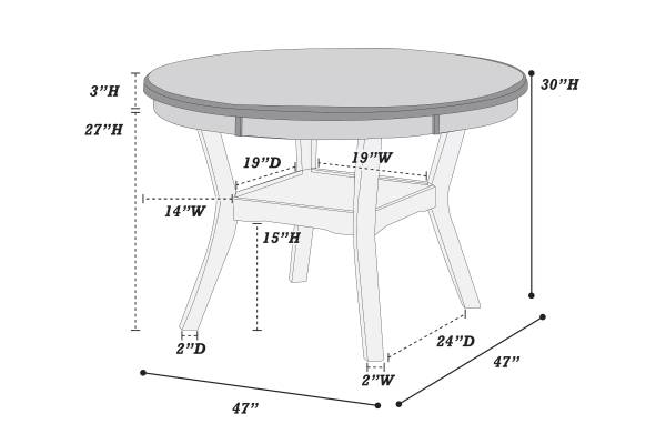 Set includes table and 4 chairs. Gray color Dimensions: DINING TABLE: 47" Dia. X 30.8" H DINNING CHAIR: 18" x 22.5" x 38" Brand new in a box delivered directly from the manufacturer. NO SHOWROOM...