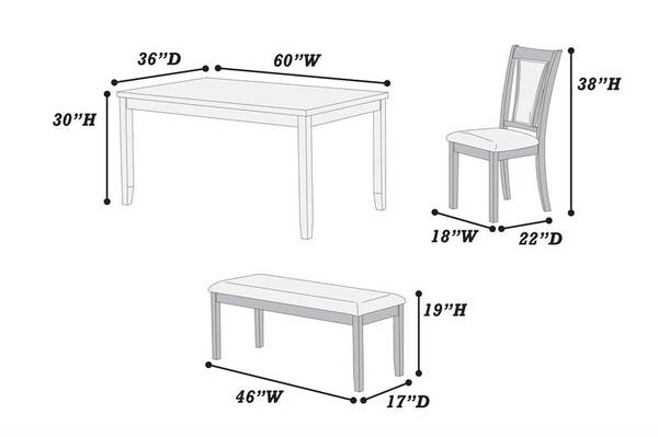 Bench: 46" x 17" x 19"H