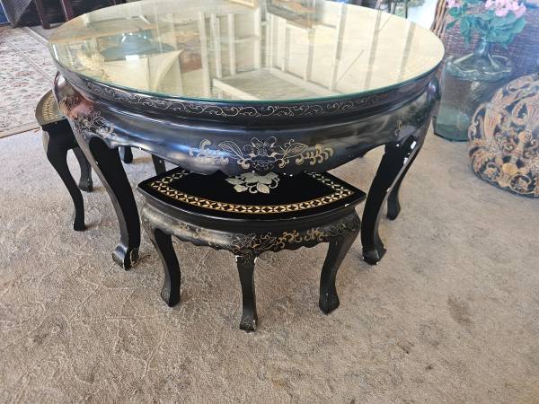 Vintage Asian Bird Motif Coffee Tea Table with 4 Stools - furniture...