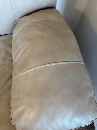Beautiful light colored couch with solid wood feet. Extremely comfortable. Removable cushions. Size is 80" Comes from a smoke free home. We are moving and cannot take it with us.
