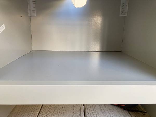 The back side of the cabinet has been modified to accommodate plumbing.