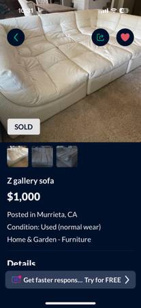 Pit sofa Z Gallerie white off/white leather modular sectional couch. It’s extremely versatile- paid $1000 as you can see. Thanks for looking.