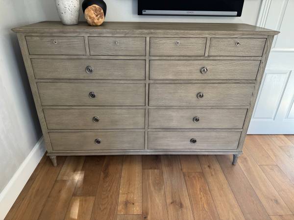 Inspired by late 18th-century French furnishings, we've captured the linearity and rectangular forms associated with that period. Crafted of solid hardwood, each piece is carefully distressed using a hand-applied multistep process to achieve the look of a weathered antique. The tapered, slightly turned legs are fluted, a reference to Classic columns.
