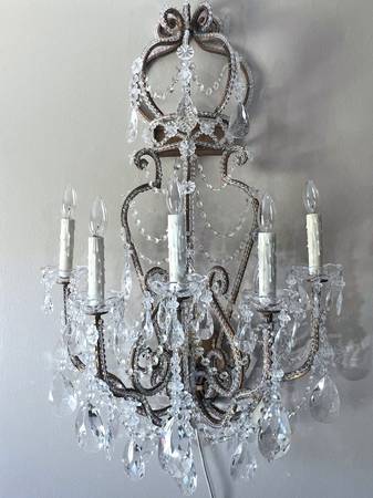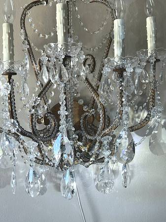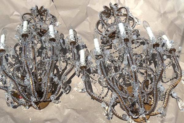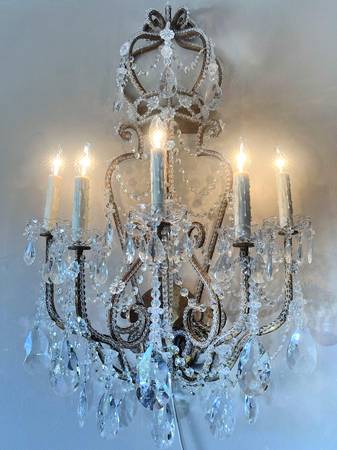 Pair Dennis Leen Light Crystal Beaded French Chateau Sconces 5 Light...