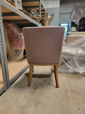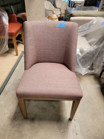 A modern custom piece, originally made for a design project but never used. In pristine condition, this chair combines a warm wood base with a soft mauve-toned upholstered seat and back — perfect for adding a pop of style and comfort to any room.