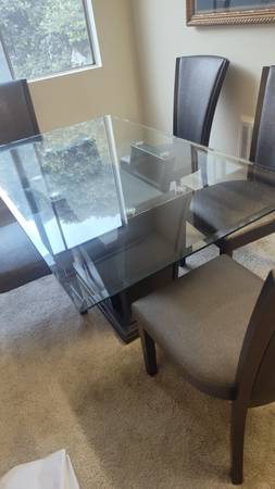 Keywords for relevance: dining room table, dining table with chairs, 4 chair set, extra chairs, kitchen table, furniture sale, moving sale, used furniture, table and chairs