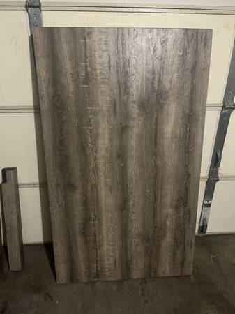 Dining table in decent shape, a couple dings on the sides. That's why its so cheap. The top is some kind of laminate but it's a nice heavy, solid table.