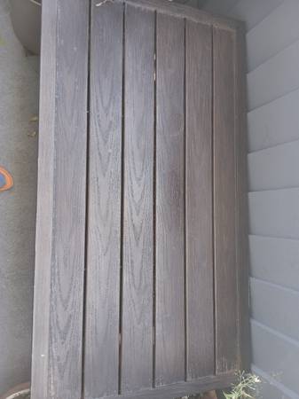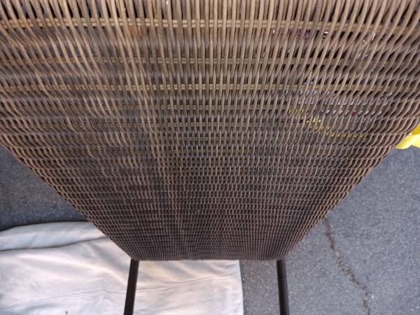 Selling this very nice out door brown wicker coffee table with a rustic wood like metal top. It measures 40" long x 18.5 x 22" It is structurely very sound. The top is rustic but no major damage.