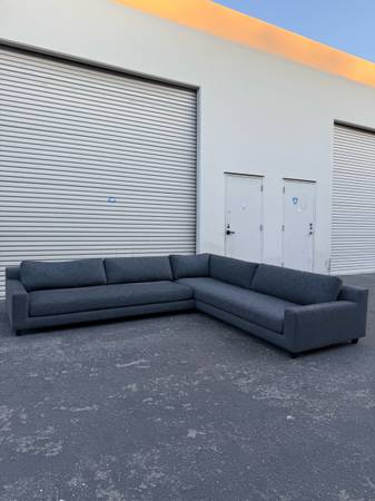 Restoration Hardware Modena track arm sectional couch in Perennials Performance Textured Linen Weave fabric with dark gray color. Excellent condition with no rips, stains or damage!
