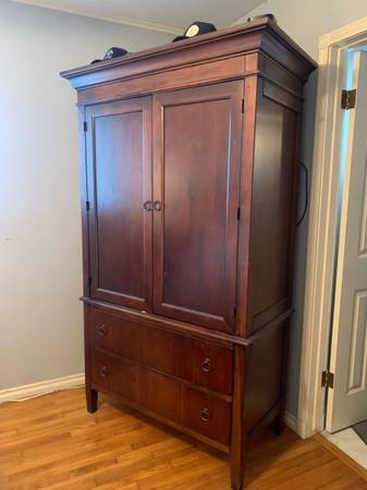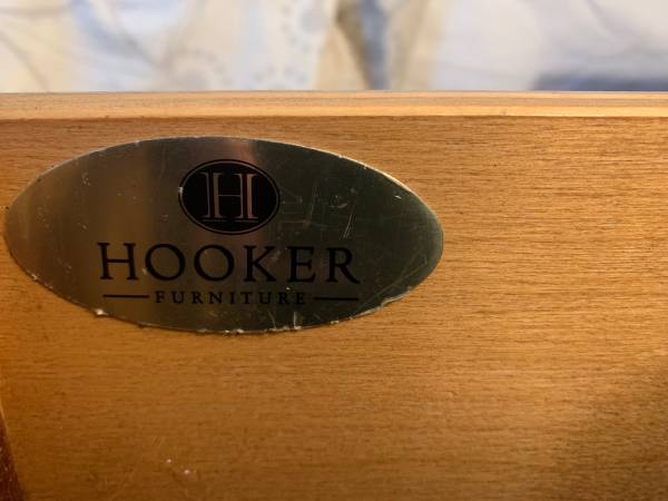 Well built solid hardwood (not veneer) from Hooker Furniture, originally $3500 set includes: -California King Frame + Headboard -Spacious matching Armoire with shelving, two oversized drawers, built...