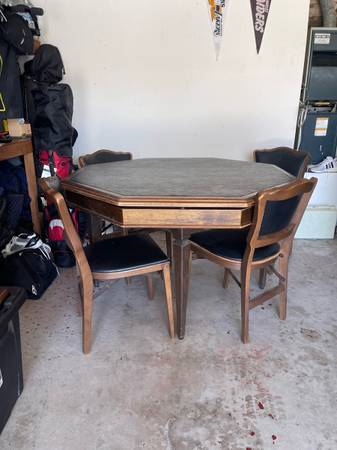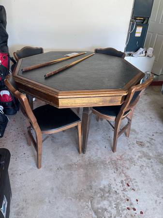 Vintage poker / dining / bumper pool table Real wood and leather Original owner since 1970s