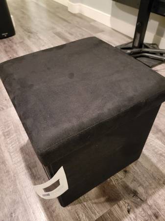 Brand new, never used. Still has the tags! Black Collapsible storage ottoman, can double as a seat or footrest as well. Dimensions: 15.5 x 15.5