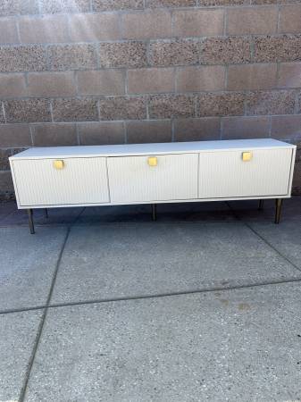 Off White TV Stand. Bought new but didn’t match. Hight is 21 inch. 16W, 71 Length. .