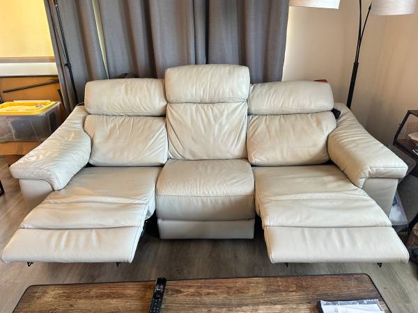 Top-grain leather power sofa with dual power recliners and dual power headrests on both ends. About 1.5 years old and originally $4,800 new.