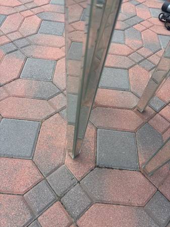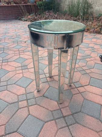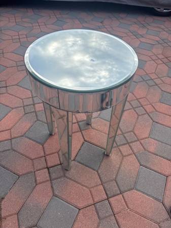 Nice mirror side table no cracks good condition. High-end looking approximately 30 inches high by 16 wide.