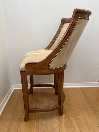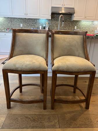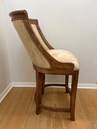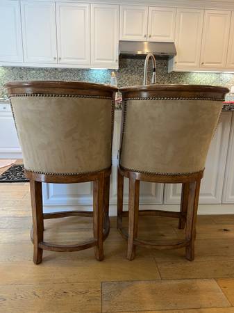 Bar Stools, With Nail heads and Suede Fabric. pair of (2) 20 . 5W 23 . 5D 42 . 5H 30SH Sell for $1200 pair
