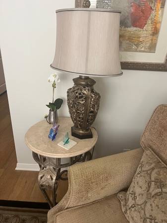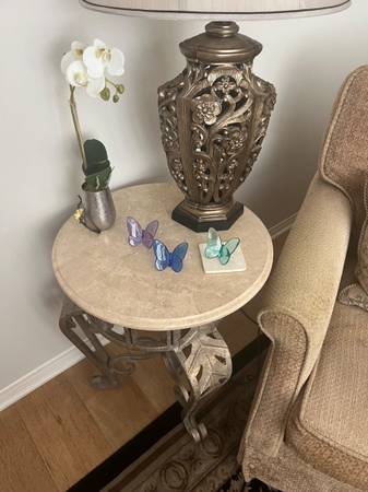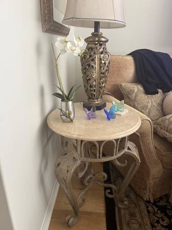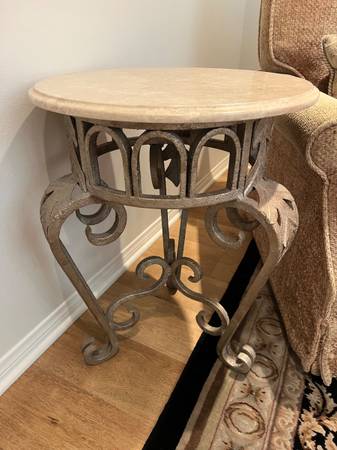 Round Rot Iron End Table, Custom Made, With Travertine Marble Top, Unique Design 22W 27H Sell For $800