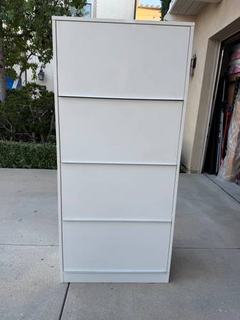 Tall white filing cabinet with 4 spacious drawers. Smooth drawer operation and plenty of storage for files or office supplies.