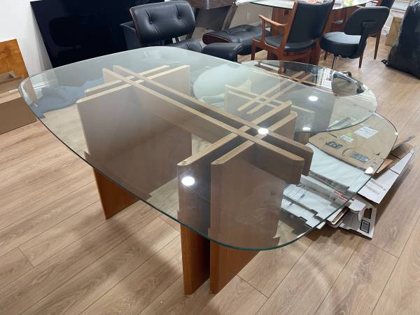 Mid Century Modern Table - Gustave Gaarde- Danish - Vintage 1970’s - B Seats 4 comfortably Thick beveled glass with Teak wood leg