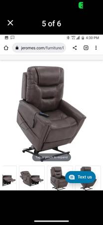 Fully functional, gently used, comfortable recliner. Similar to one currently sold at Jerome's for $1,487. Chair fully reclines and also lifts up to help you stand on your feet. Minor damage to back...