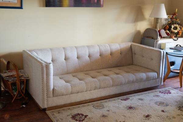 I am selling my Myles Sofa from World Market. It's in a light neutral tone that goes well in any living room.