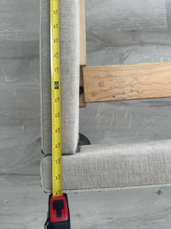 Bed frame with headboard (originally from Macy’s) Measurements: Length of frame: 79 inches (3rd picture) Width of frame: 61 inches (4th picture) Height of frame: 13 inches (5th picture) Height of...