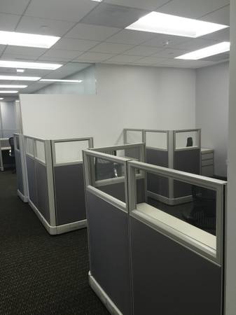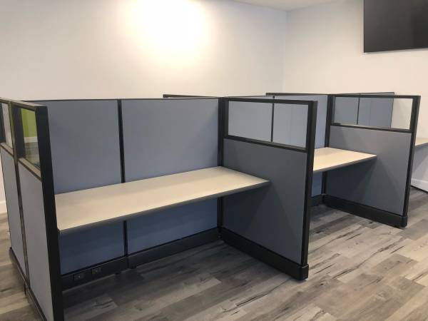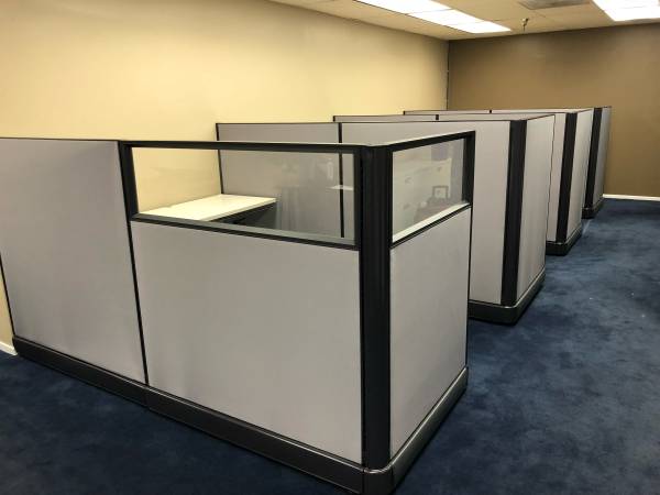 Refurbished office cubicles, any size, custom made for your space Glass cubicle, regular cubicles, telemarketing, stations New office furniture, Catalog available Free estimates