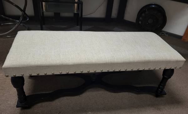 Black Wood with Beige Fabric cushion In good condition, very clean Dimension (44" x 17" x 17"h)