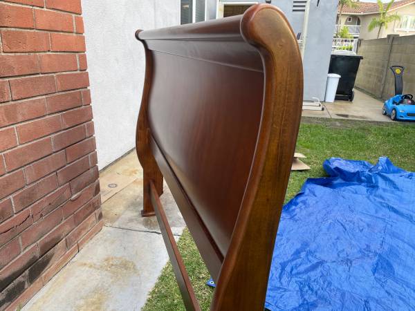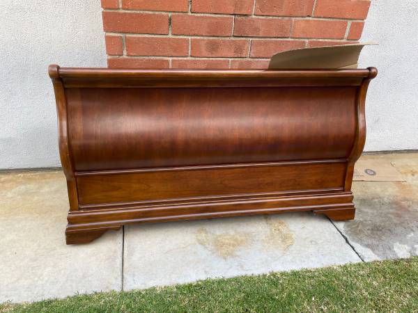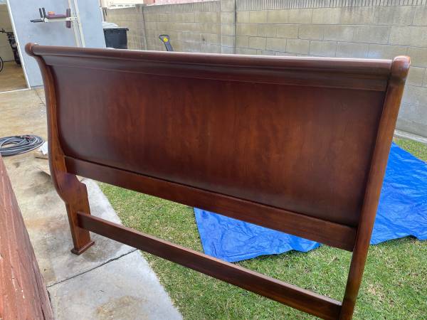 SLEIGH BED - Wood Heavy and sturdy bed frame. Has some dings and scratches.