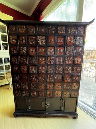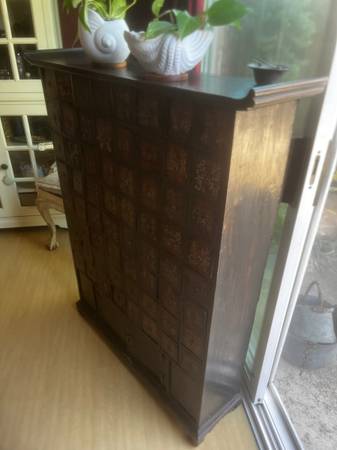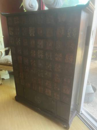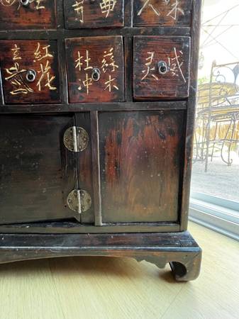 Old wood Japanese medicine cabinet. Asking $395. Measurements are in photos. Also see photos bottom door needs to be glued. TEXT ONLY PLEASE NOT RESPONDING TO LINKS NOT RESPONDING TO EMAILS...