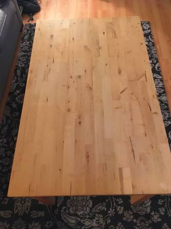 Ikea Bjorkudden solid pine kitchen table in excellent condition for sale for $65. This table is made of 100% solid pine wood and has no noticeable wear. Easy to disassemble the legs for transporting...