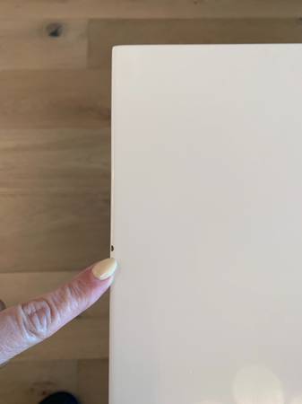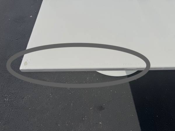 Sight chip on one side and slight bubbling on one corner. See pictures.