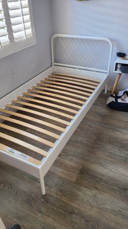 Ikea NESTTUN Twin bed frame, White Steel Qty 2. Perfect for twins or any kids room with matching beds.