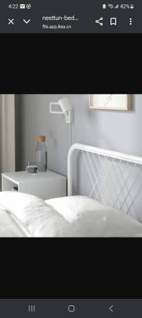 Ikea says - The durable steel construction is coupled with a net-patterned headboard, creating a light and airy expression. A simple design that mixes nicely with a variety of other styles and furniture.
