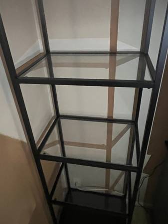 Like new glass shelving unit. Good condition. $50 or best offer.