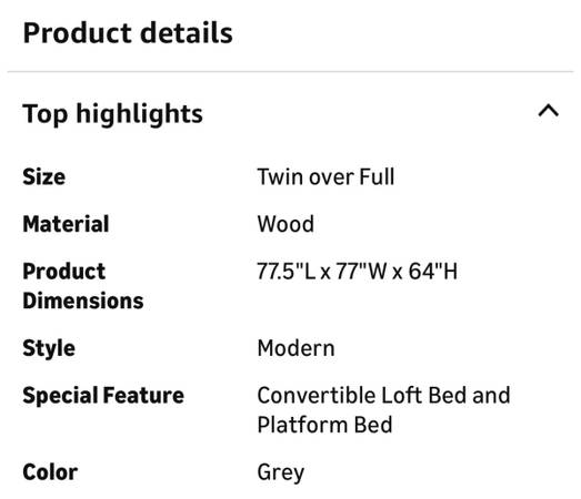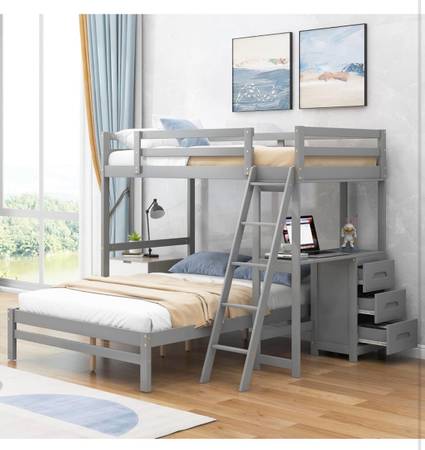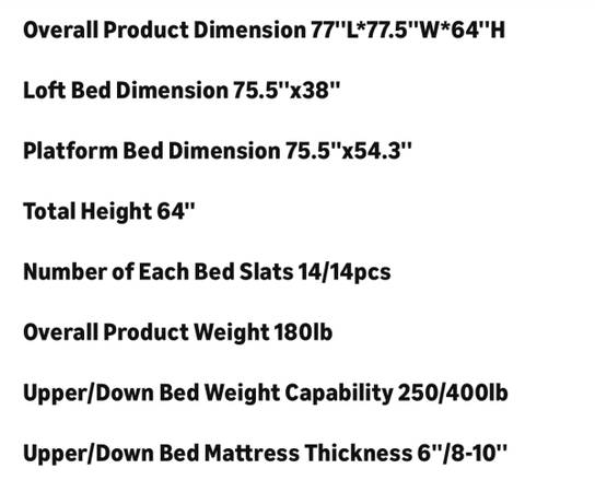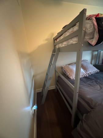 Twin over full bunkbed with ladder and guard rails. Twin mattress included. Pick Up Only