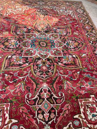 Amazing rare antique handmade Persian wool Heriz rug over 100 years old . Rare piece