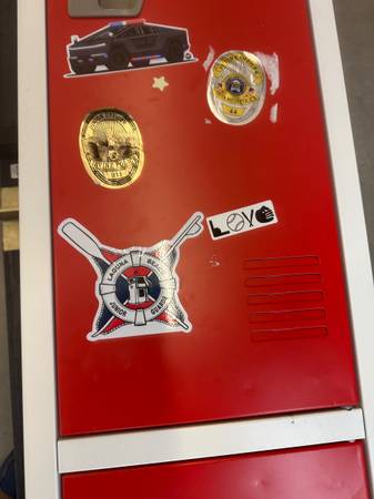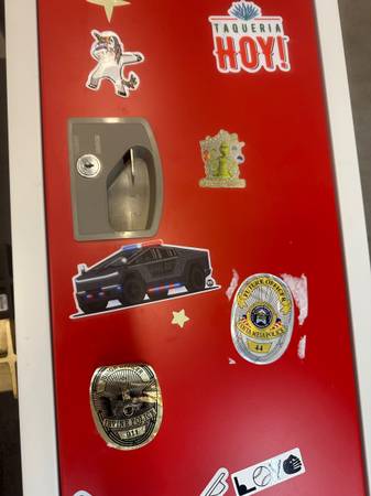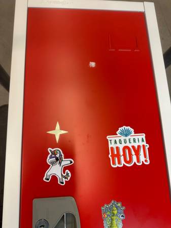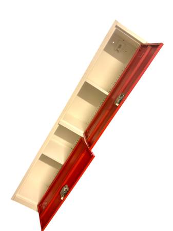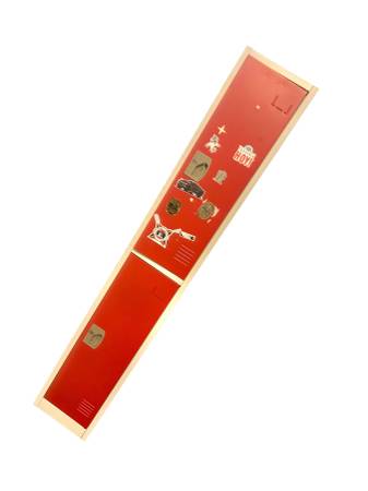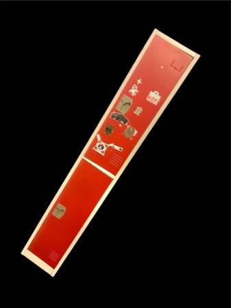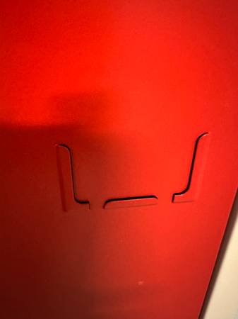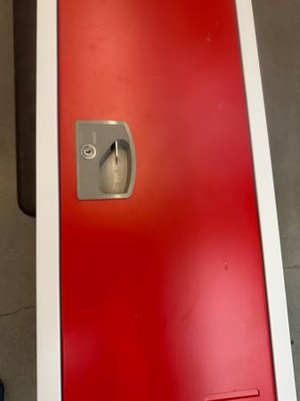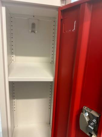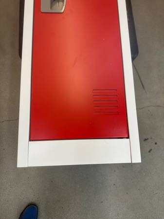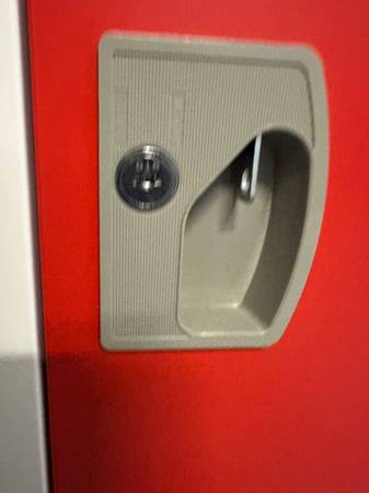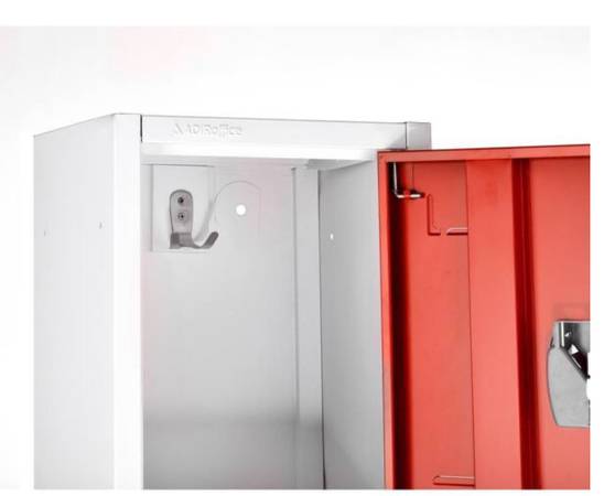 Sides of the locker are furnished in a neutral off-white color, accented by vibrant door color