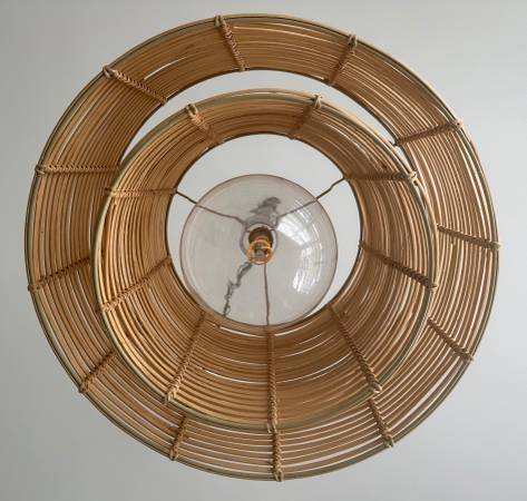 Expert makers carefully work rattan around a metal frame for a beautifully sculpted look that recalls antique fishing baskets. It has a relaxed, airy feel that complements coastal homes and softens modern spaces.